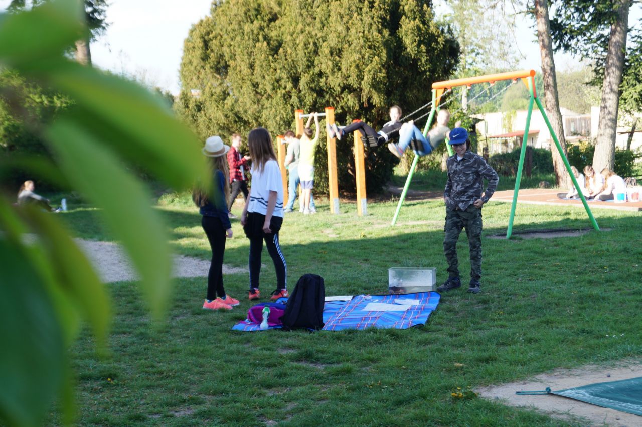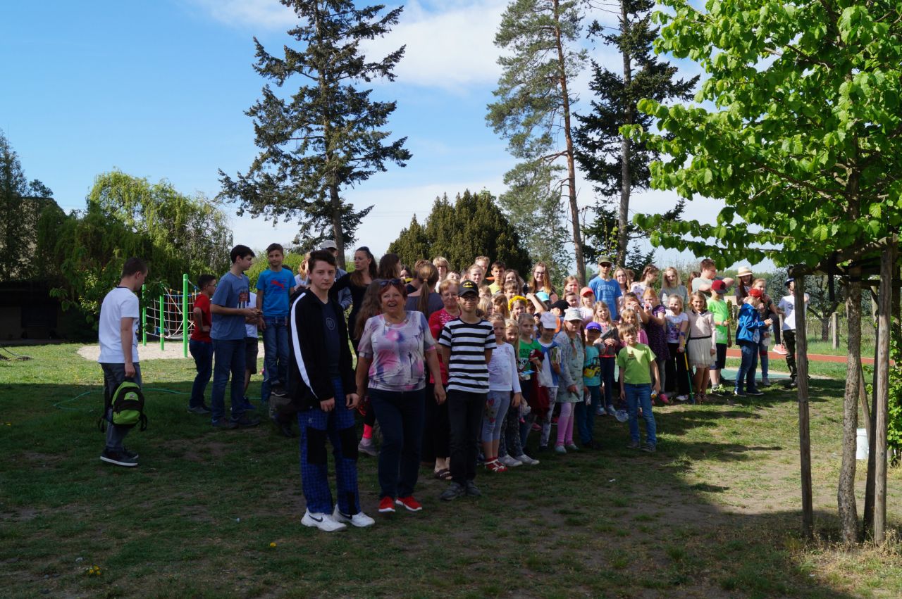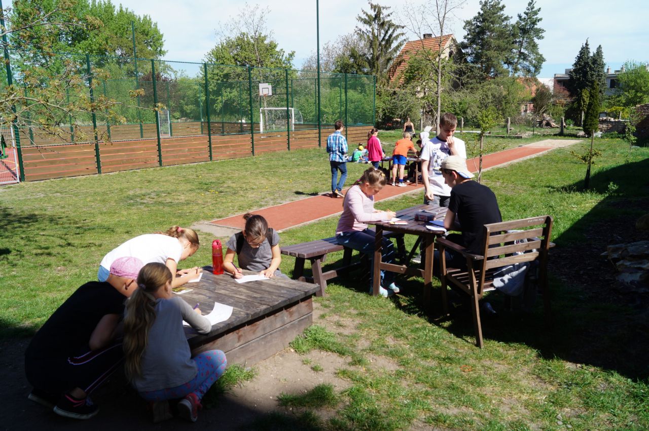 Den země slavíme sice 22.4., ale protože to byly Velikonoce a v následujícím týdnu stále někdo odjížděl, oslavili jsme den země až 26.4. Žáci druhého stupně pod vedením žáků přírodovědného semináře připravili úkoly, které seznamovaly menší děti s tématikou spojenou se Dnem Země. Celý program se odehrál na školní zahradě.