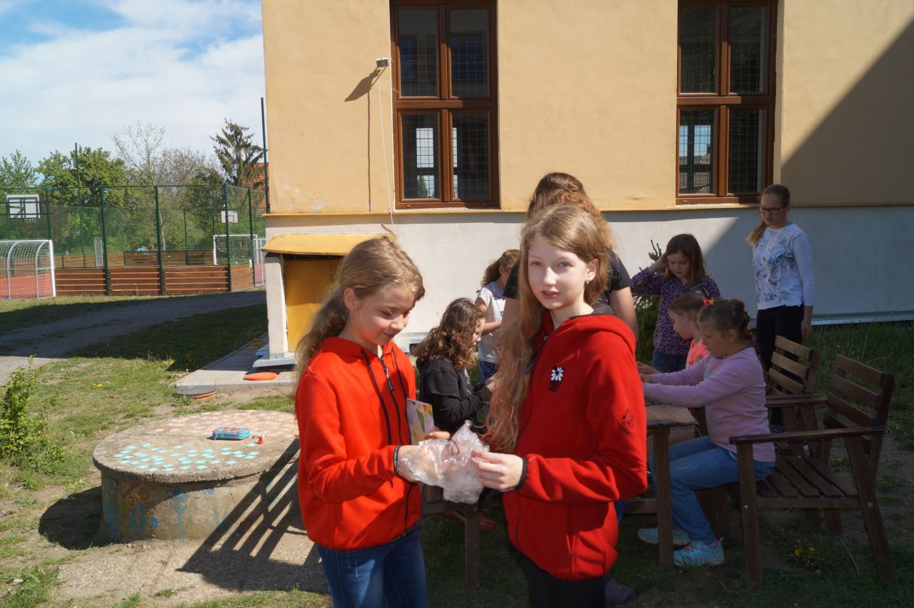 Děti z prvního stupně dostaly průkazky, do kterých sbíraly razítka. Po splnění požadovaného množství úkolů pak dostaly pitíčko a malé bonbónky, také environmentální záložku do knížky.