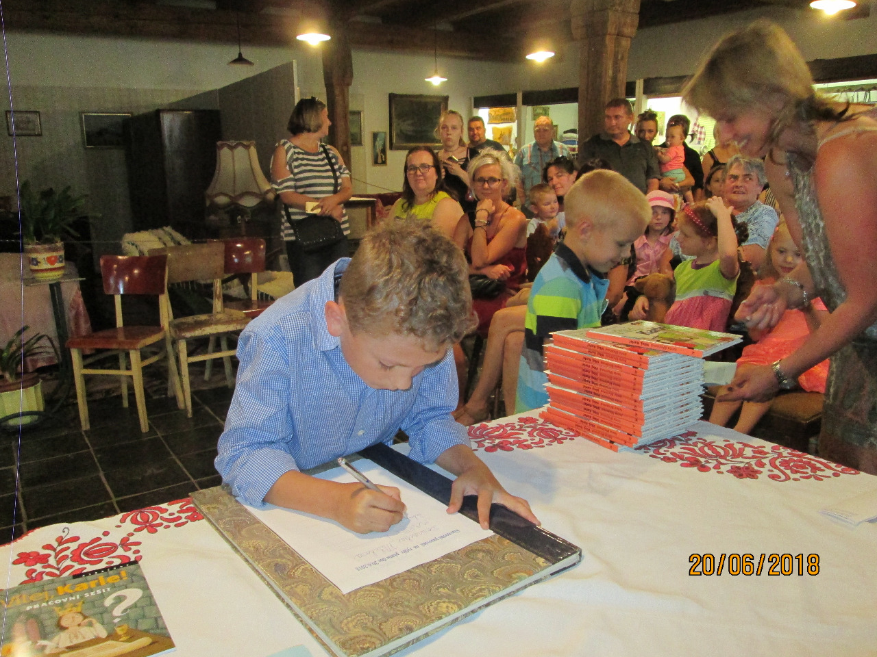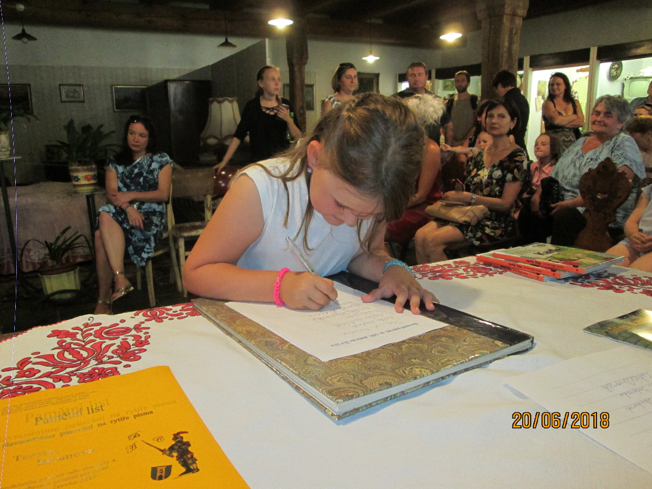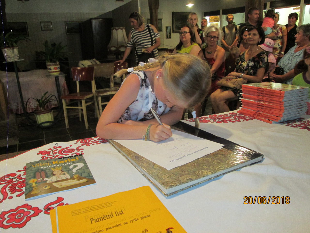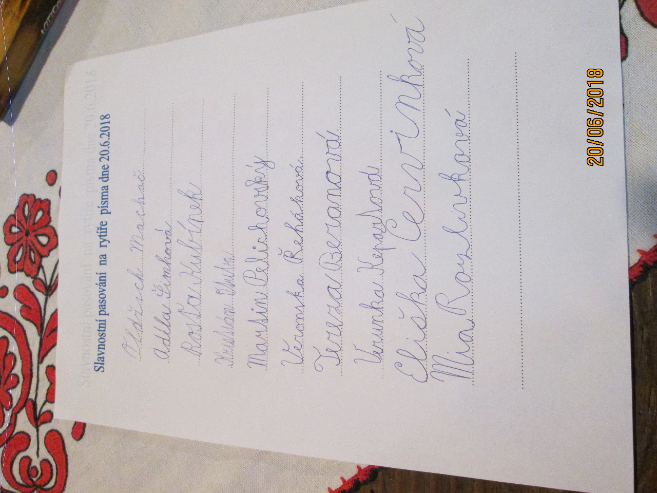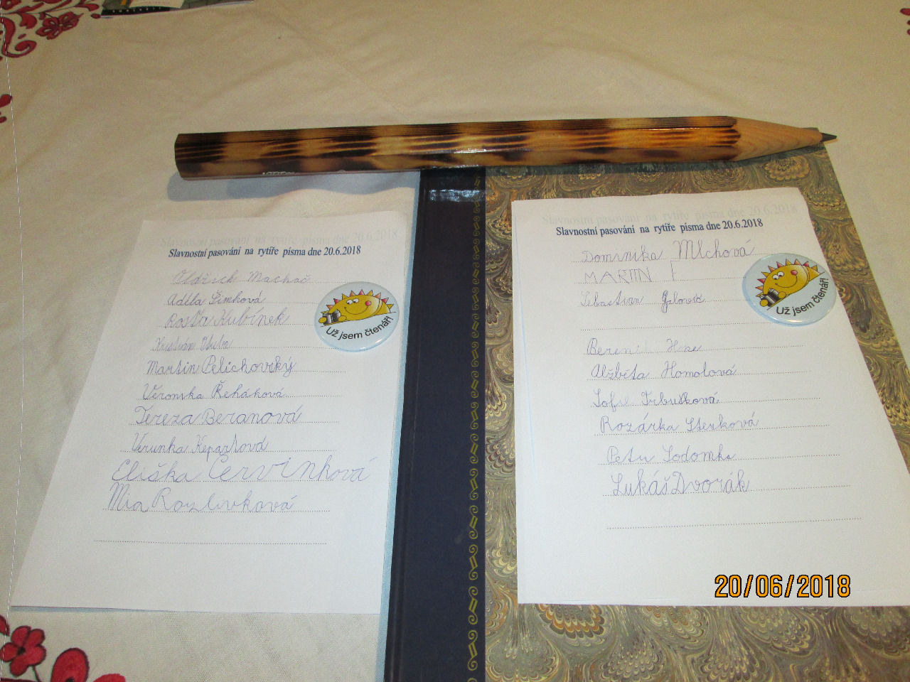 Ve středu 20.6.2018 se ve skanzenu konalo již tradičně Pasování prvňáčků na čtenáře a rytíře písma. Za obec se opět zúčastnila a pasovala žáčky zastupitelka Mgr. Alena Bakošová. Zkouška se skládala ze dvou částí: prvňáčci přečetli pohádku o Křemílkovi a poté se museli podepsat. Protože všichni zvládli úkol na jedničku, obdrželi od obce pamětní list a od školy knihu a odznak čtenáře. Paní ředitelka na závěr poděkovala nejen paní učitelce Mgr. Aleně Kolenské, ale i rodičům za vzornou spolupráci se školou.