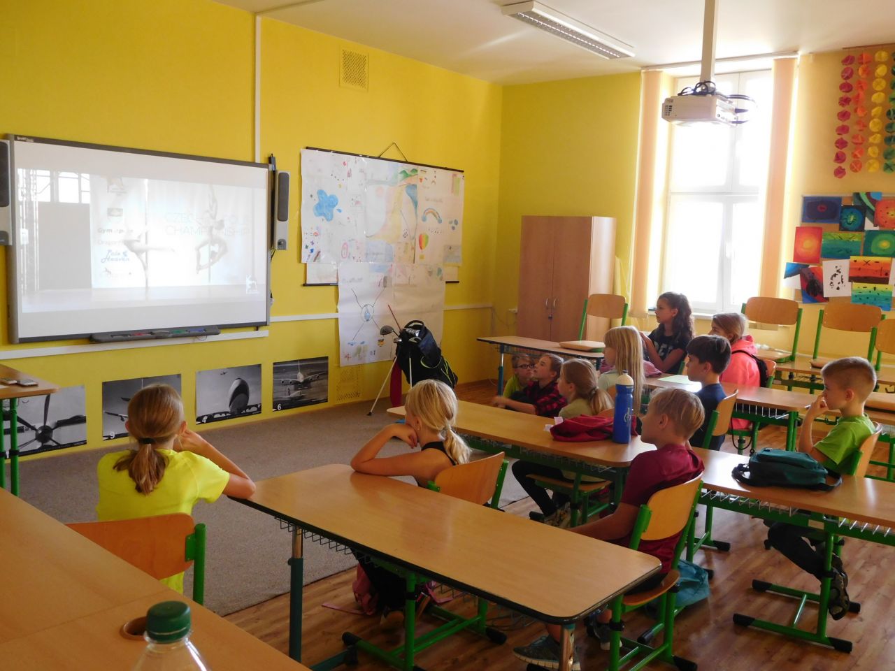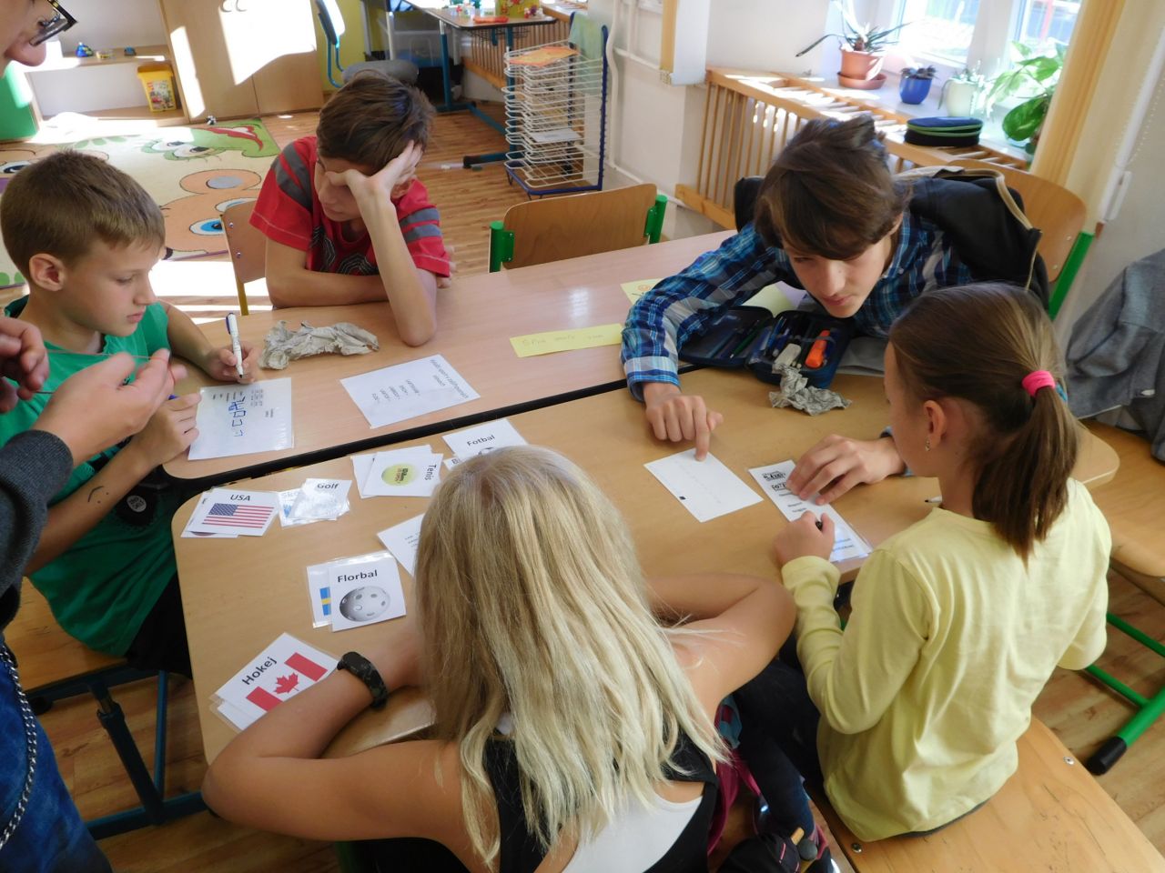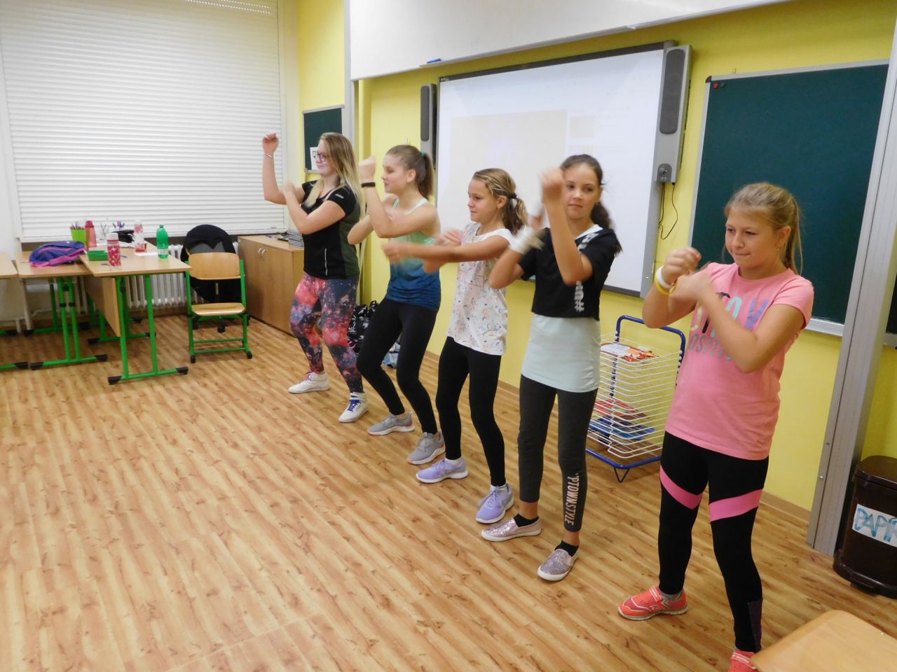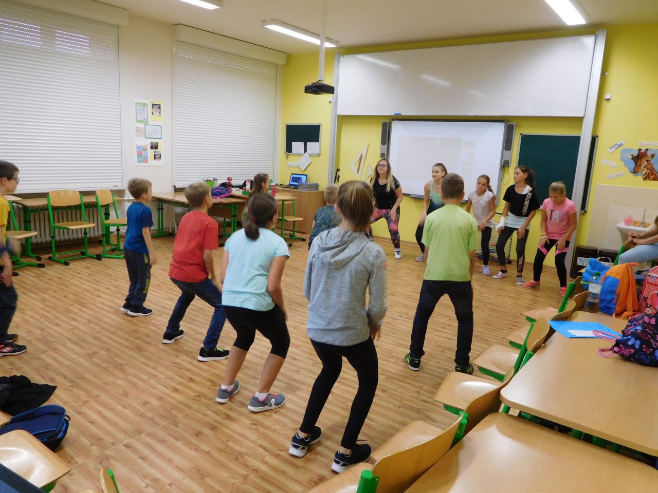 V úterý 1.10.2019 na naší škole proběhl projektový den ,,Hýbeme světem". Projektový den realizovali žáci a žákyně 2.stupně za pomoci pedagogů. Hlavním cílem bylo propojení problematiky multikulturní výchovy s tématem sport. Žáci a žákyně 1.stupně byli rozděleni do 8 skupin a společně se svým průvodcem obcházeli připravená stanoviště, kde se formou stolních her, pracovních listů, prezentací, divadelní scénkou či sportovní aktivitou dozvěděli o daném tématu více. Zjistili nejen odkud sporty pochází, jakou mají historii, pravidla a místo v kultuře různých zemích, ale také se dozvěděli, co znamenají pojmy rasismus, diskriminace, Fair Play aj.