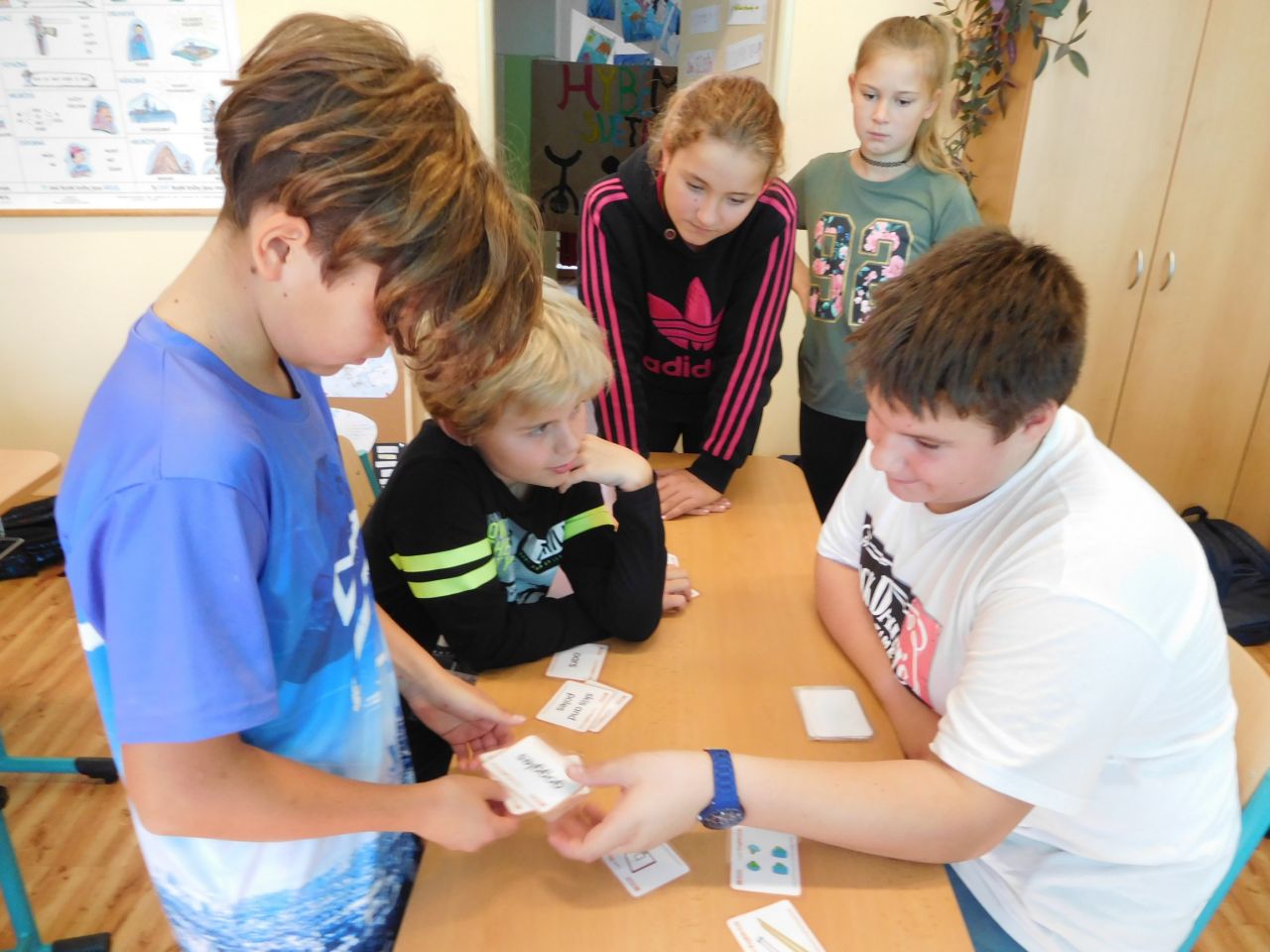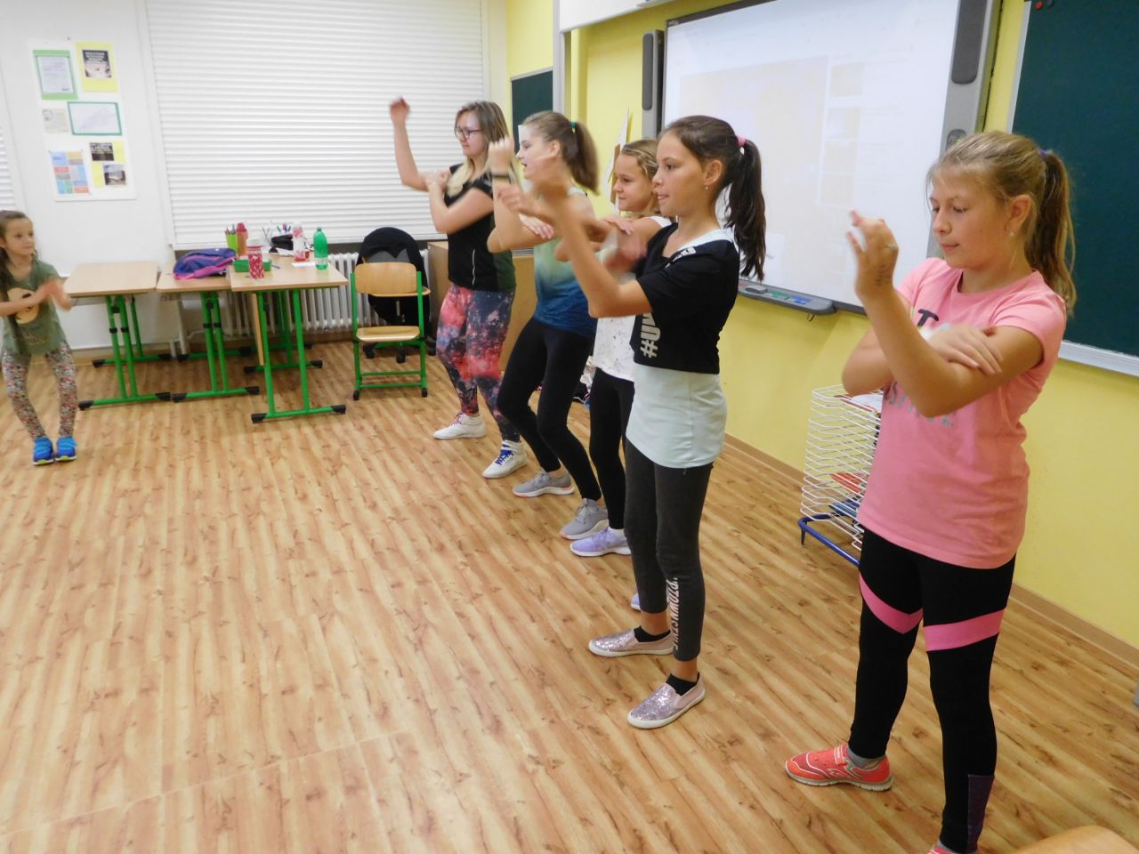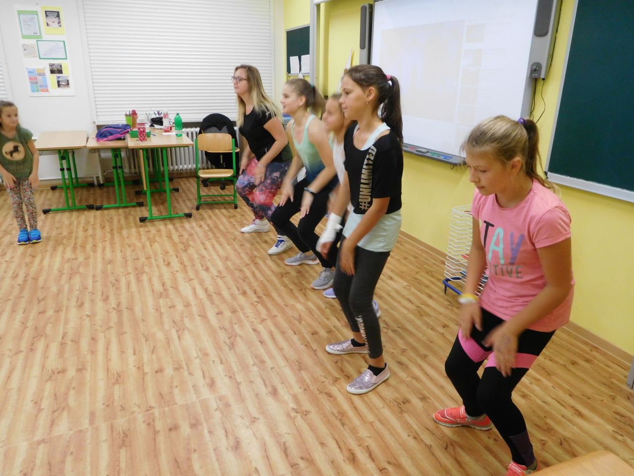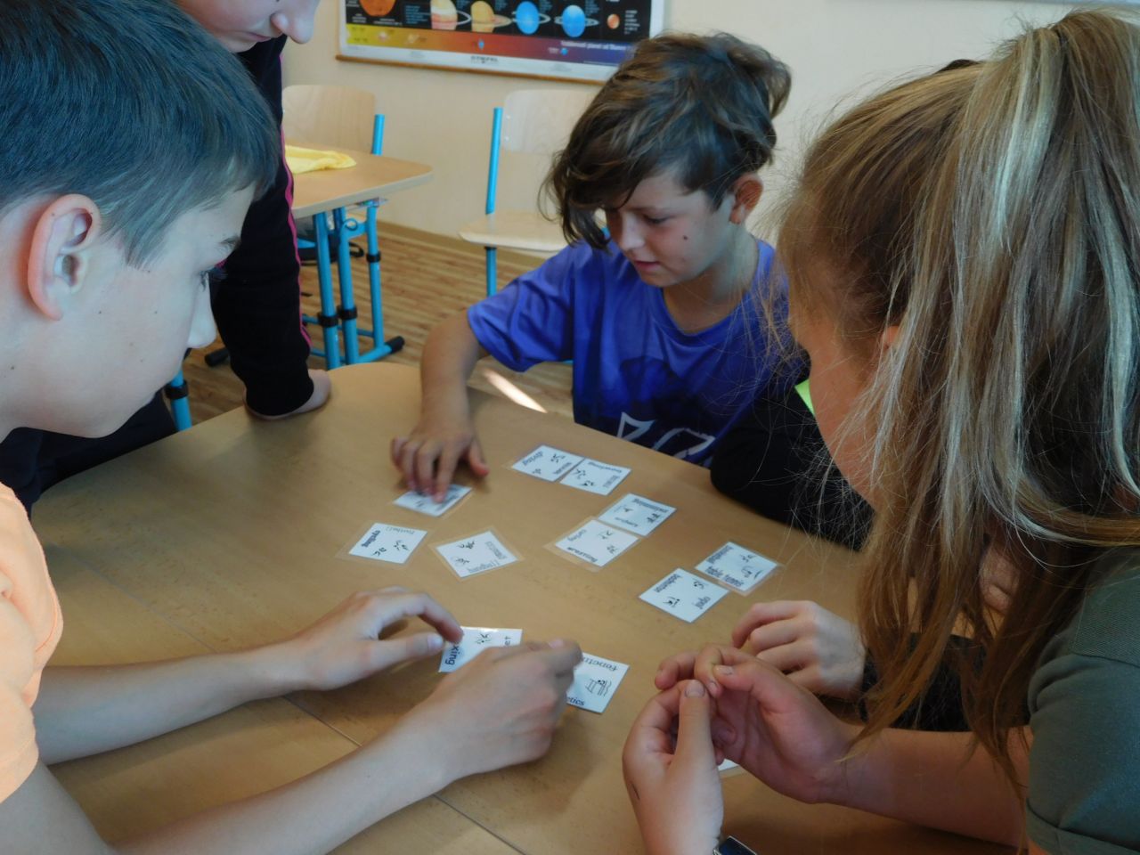V úterý 1.10.2019 na naší škole proběhl projektový den ,,Hýbeme světem". Projektový den realizovali žáci a žákyně 2.stupně za pomoci pedagogů. Hlavním cílem bylo propojení problematiky multikulturní výchovy s tématem sport. Žáci a žákyně 1.stupně byli rozděleni do 8 skupin a společně se svým průvodcem obcházeli připravená stanoviště, kde se formou stolních her, pracovních listů, prezentací, divadelní scénkou či sportovní aktivitou dozvěděli o daném tématu více. Zjistili nejen odkud sporty pochází, jakou mají historii, pravidla a místo v kultuře různých zemích, ale také se dozvěděli, co znamenají pojmy rasismus, diskriminace, Fair Play aj.