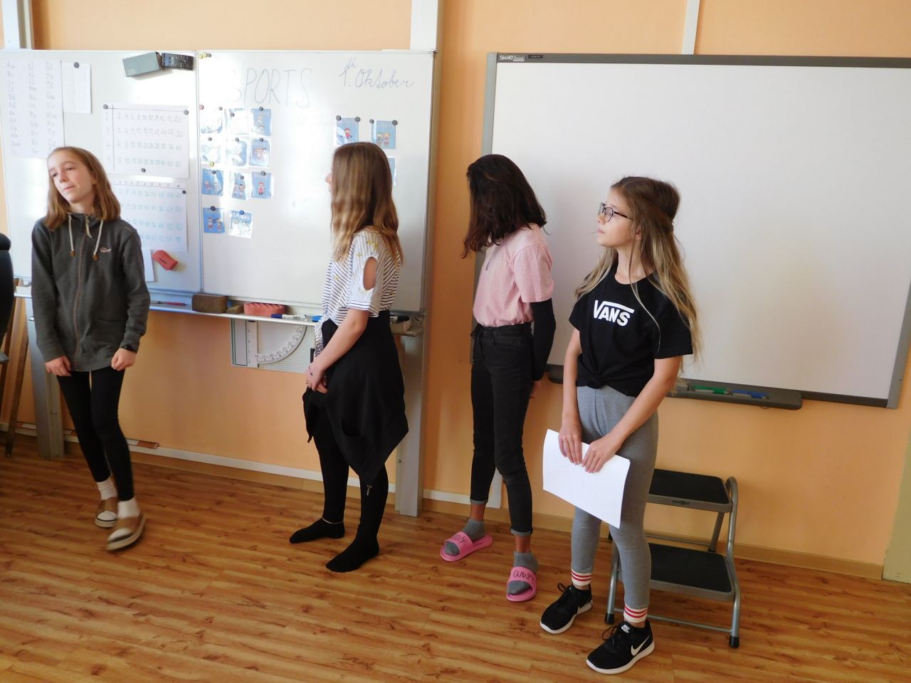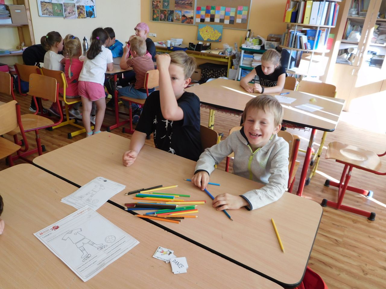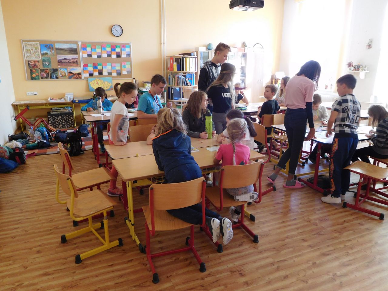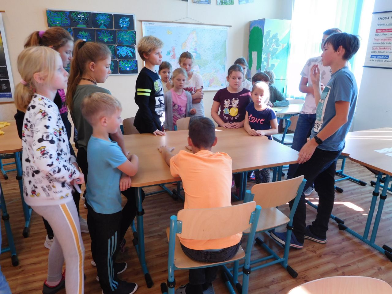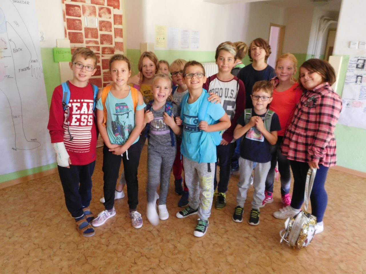 V úterý 1.10.2019 na naší škole proběhl projektový den ,,Hýbeme světem". Projektový den realizovali žáci a žákyně 2.stupně za pomoci pedagogů. Hlavním cílem bylo propojení problematiky multikulturní výchovy s tématem sport. Žáci a žákyně 1.stupně byli rozděleni do 8 skupin a společně se svým průvodcem obcházeli připravená stanoviště, kde se formou stolních her, pracovních listů, prezentací, divadelní scénkou či sportovní aktivitou dozvěděli o daném tématu více. Zjistili nejen odkud sporty pochází, jakou mají historii, pravidla a místo v kultuře různých zemích, ale také se dozvěděli, co znamenají pojmy rasismus, diskriminace, Fair Play aj.