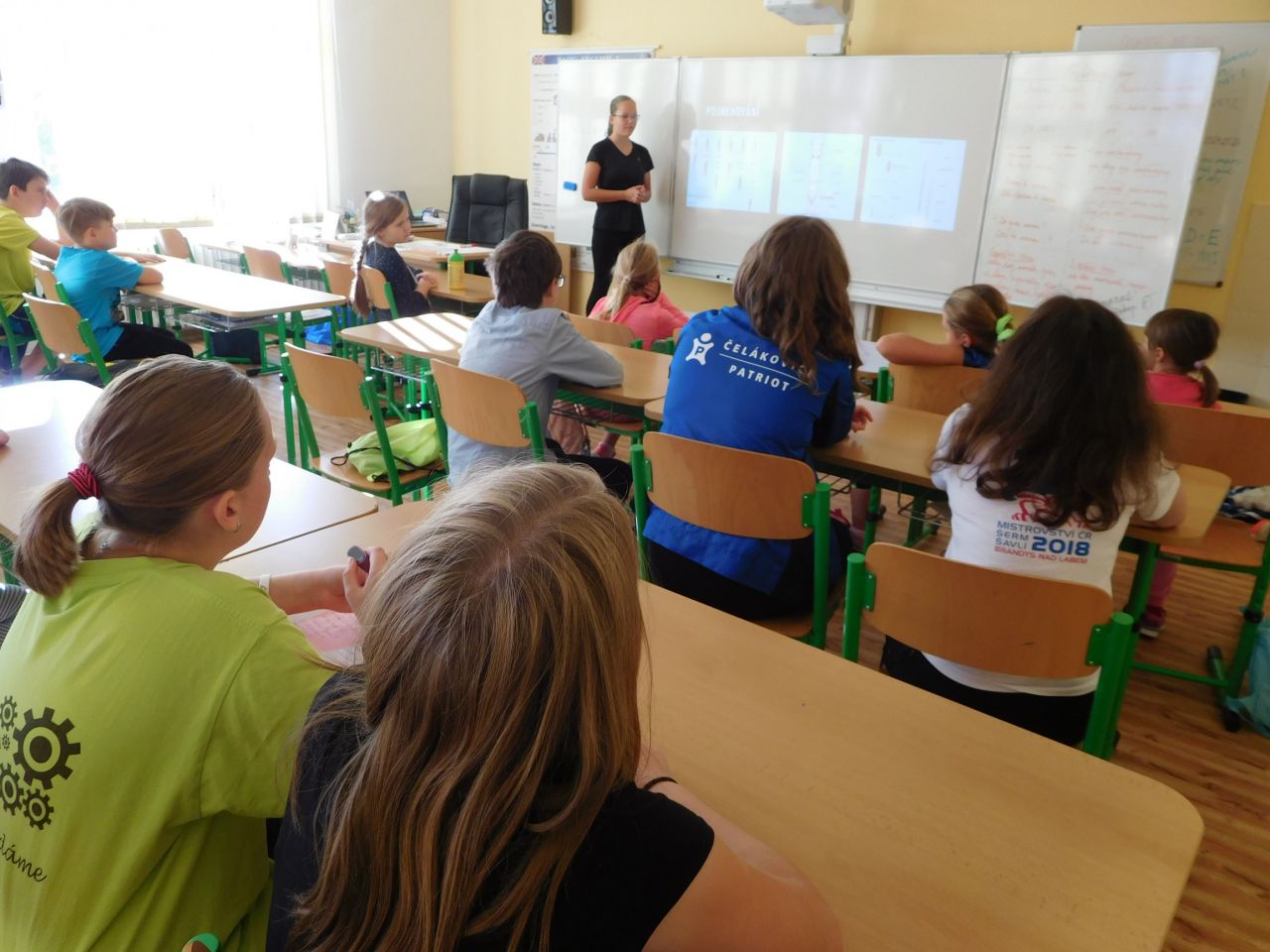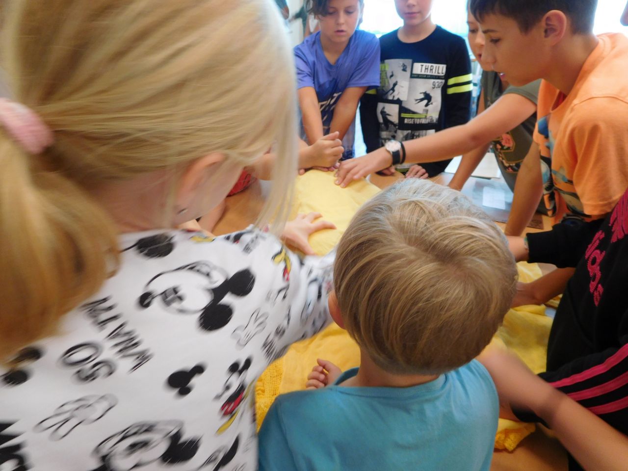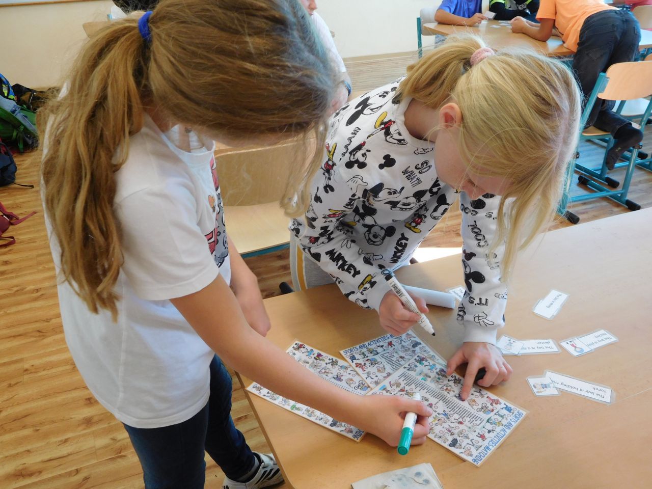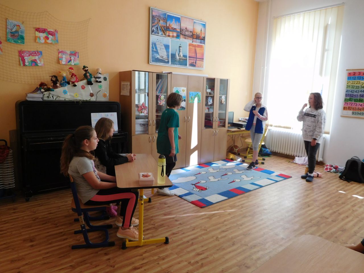 V úterý 1.10.2019 na naší škole proběhl projektový den ,,Hýbeme světem". Projektový den realizovali žáci a žákyně 2.stupně za pomoci pedagogů. Hlavním cílem bylo propojení problematiky multikulturní výchovy s tématem sport. Žáci a žákyně 1.stupně byli rozděleni do 8 skupin a společně se svým průvodcem obcházeli připravená stanoviště, kde se formou stolních her, pracovních listů, prezentací, divadelní scénkou či sportovní aktivitou dozvěděli o daném tématu více. Zjistili nejen odkud sporty pochází, jakou mají historii, pravidla a místo v kultuře různých zemích, ale také se dozvěděli, co znamenají pojmy rasismus, diskriminace, Fair Play aj.