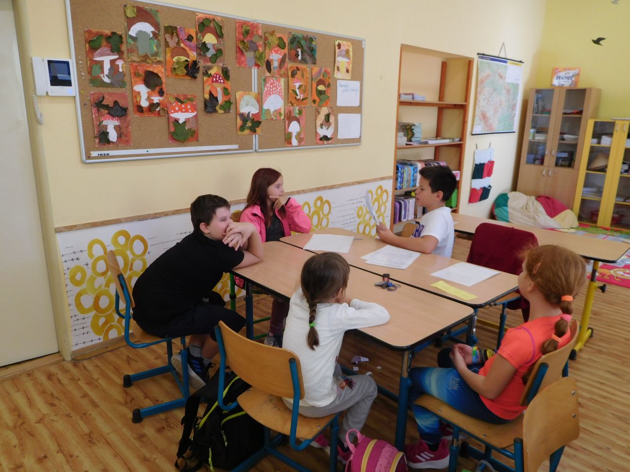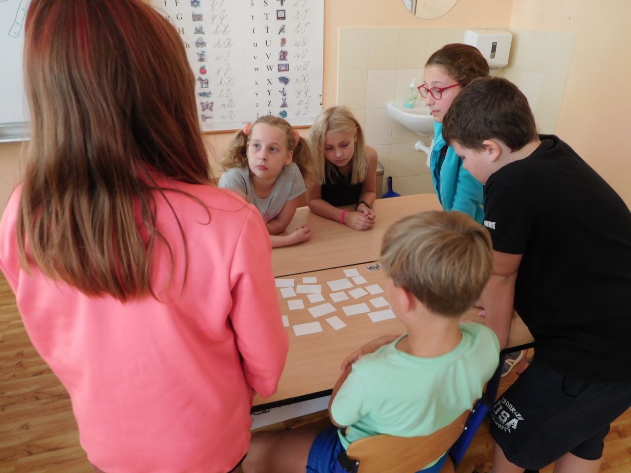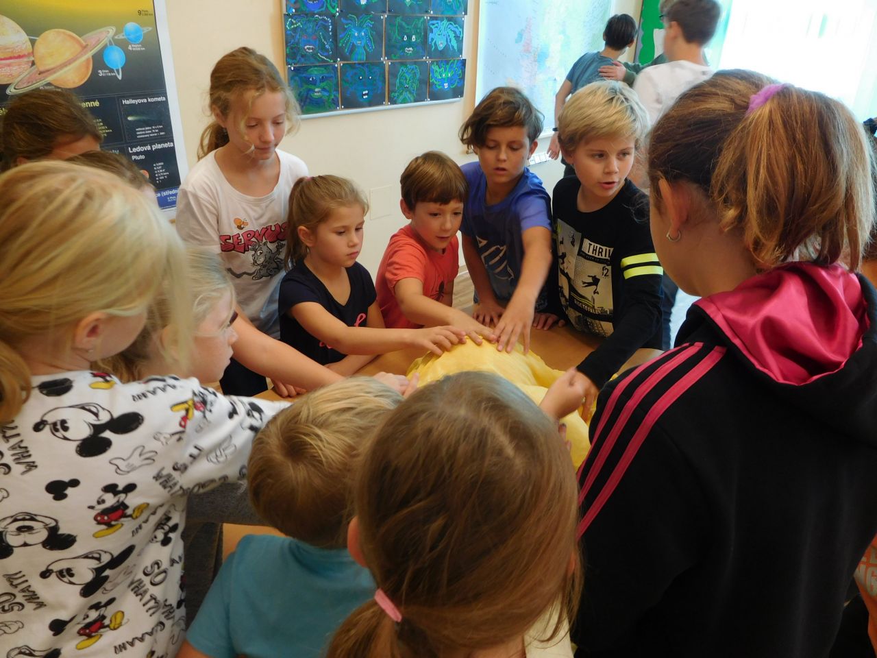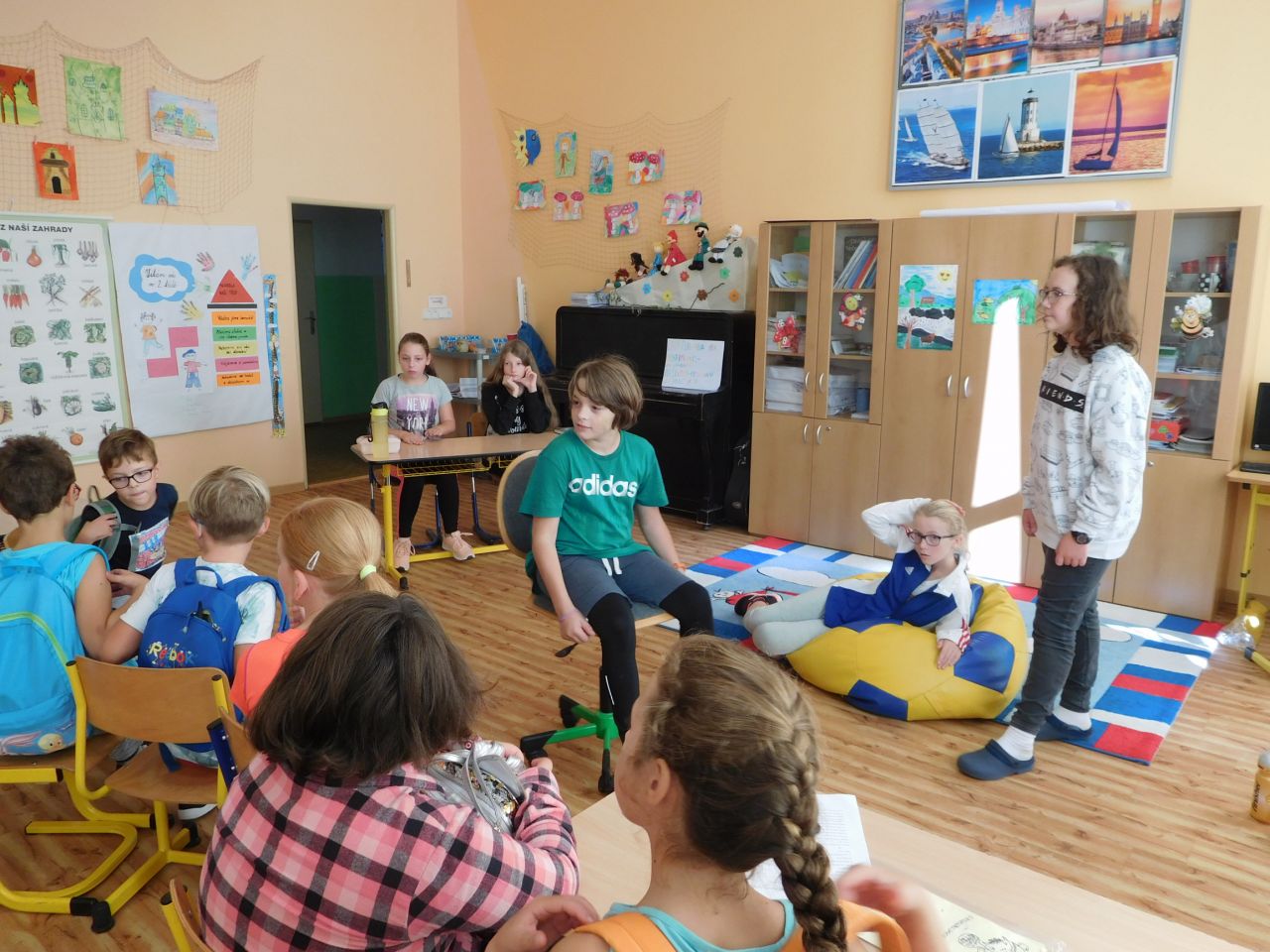 V úterý 1.10.2019 na naší škole proběhl projektový den ,,Hýbeme světem". Projektový den realizovali žáci a žákyně 2.stupně za pomoci pedagogů. Hlavním cílem bylo propojení problematiky multikulturní výchovy s tématem sport. Žáci a žákyně 1.stupně byli rozděleni do 8 skupin a společně se svým průvodcem obcházeli připravená stanoviště, kde se formou stolních her, pracovních listů, prezentací, divadelní scénkou či sportovní aktivitou dozvěděli o daném tématu více. Zjistili nejen odkud sporty pochází, jakou mají historii, pravidla a místo v kultuře různých zemích, ale také se dozvěděli, co znamenají pojmy rasismus, diskriminace, Fair Play aj.
