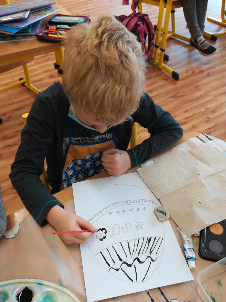 Koncem měsíce jsme se začali připravovat na blížící se Velikonoce a zdobili tuší předkreslená velikonoční vajíčka. Uvidíme, zda je stihneme dokončit.