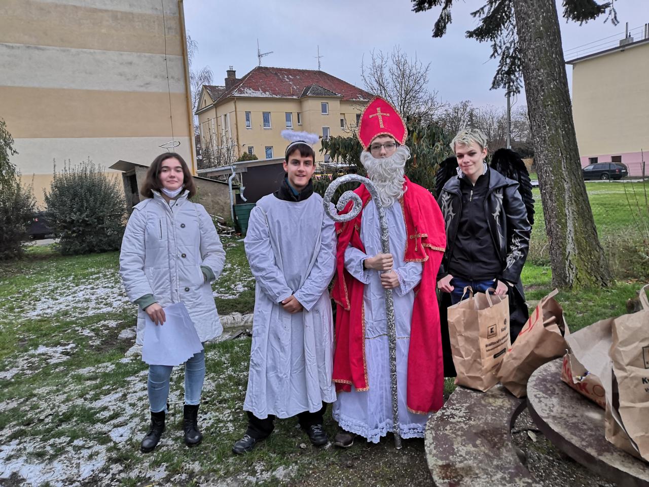 V letošním roce je mnoho věcí jiných, a tak i tradiční Mikulášská nadílka proběhla letos jinak. Čerti s Mikulášem a anděly našli nové útočiště na školní zahradě, kde pro mladší děti připravili stezku odvahy a zručnosti. Ty musely proběhnout slalom, dostat se přes čerty, přejít po laně, přeskákat obruče, přeběhnout lavičku a proběhnout ještě jeden slalom. Potom už je čekal Mikuláš s anděly, kteří je za básničku nebo písničku podarovali pitíčkem a oplatkou.
