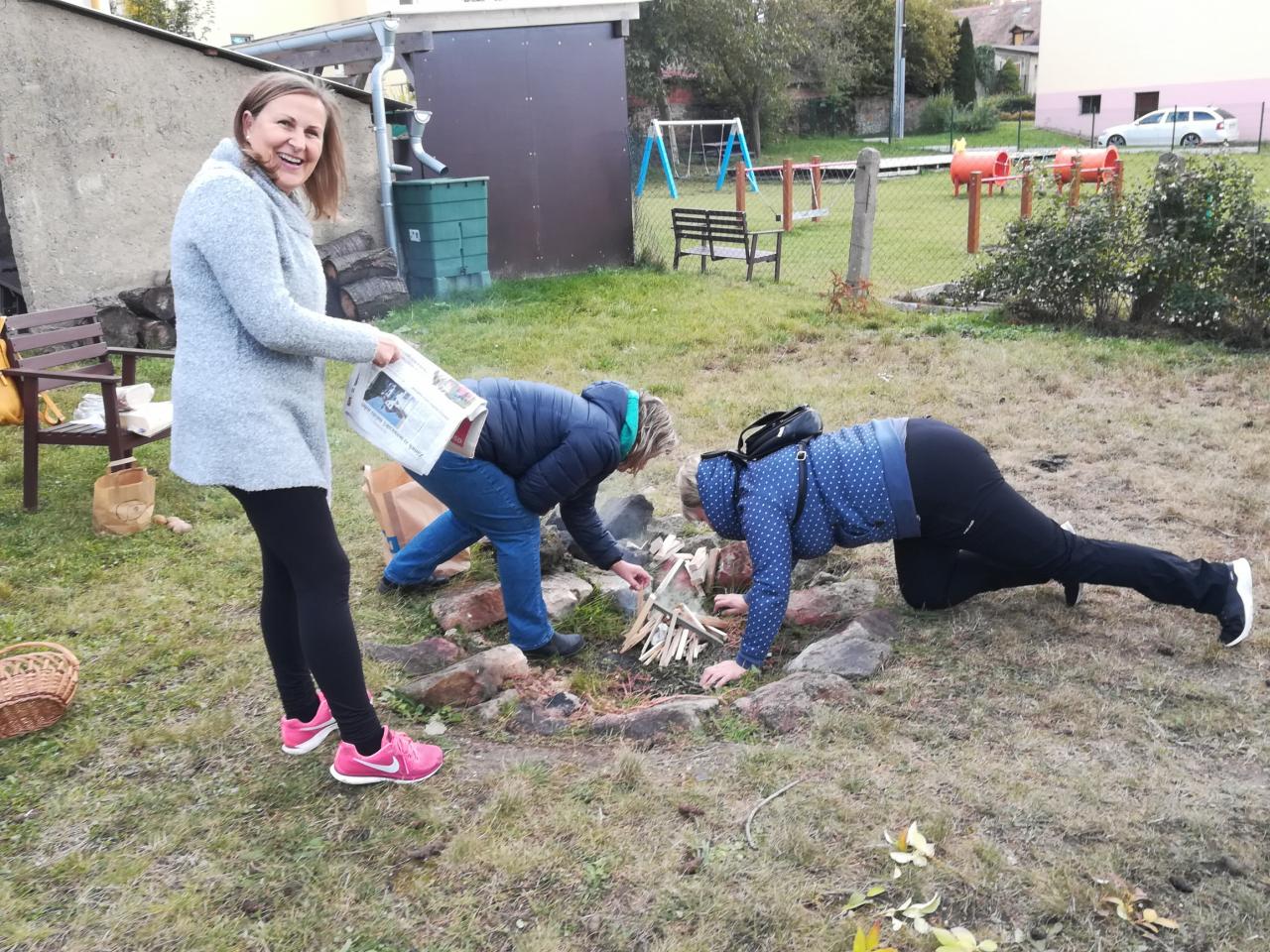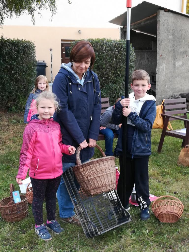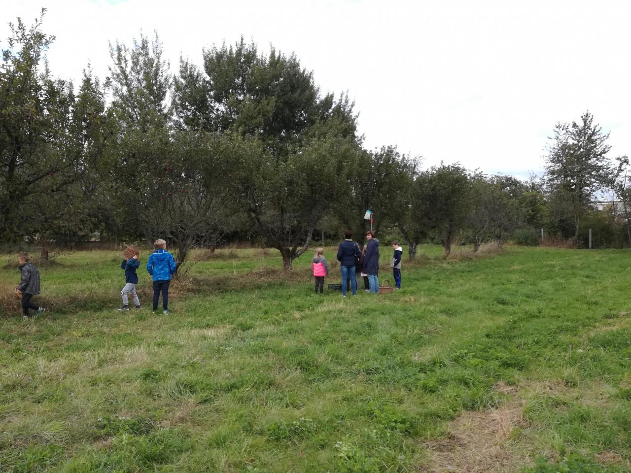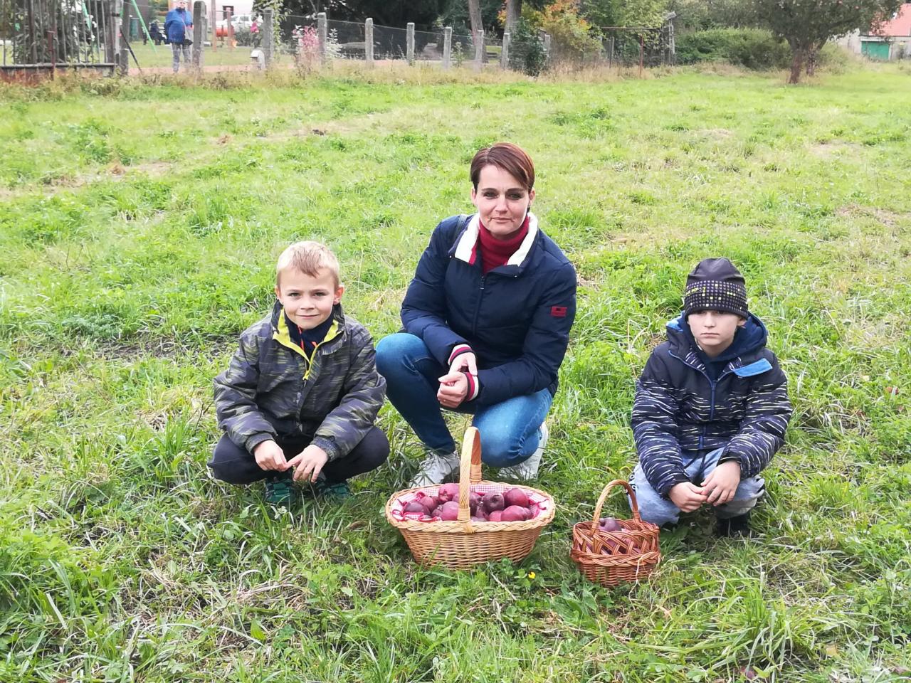 Ve středu 13. října se sešly děti ze druhé třídy s košíčky, aby společně se svými maminkami sklízely jablka ve školním sadu. Všichni přidali ruce k dílu, a tak se košíčky i bedýnka rychle naplnily a mohli jsme se přesunout k podzimnímu ohýnku, abychom společně ochutnali pečené brambory a někdo i opečený špekáček. Brambory jsme zabalili do alobalu a vložili do horkého popela. Pro maminky jsme si zatím připravili soutěž, ve které měla každá co nejrychleji sníst celé jablko. Děti maminky hlasitě povzbuzovaly a tři nejrychlejší vyhrály pro své děti sladkou odměnu. Malou sladkost nakonec obdržely všechny děti. Mezitím jsme netrpělivě čekali, jestli se nám brambory v ohni opravdu upečou. A podařilo se. Ochutnal každý. Moc děkujeme maminkám za pomoc a za příjemně strávené odpoledne.