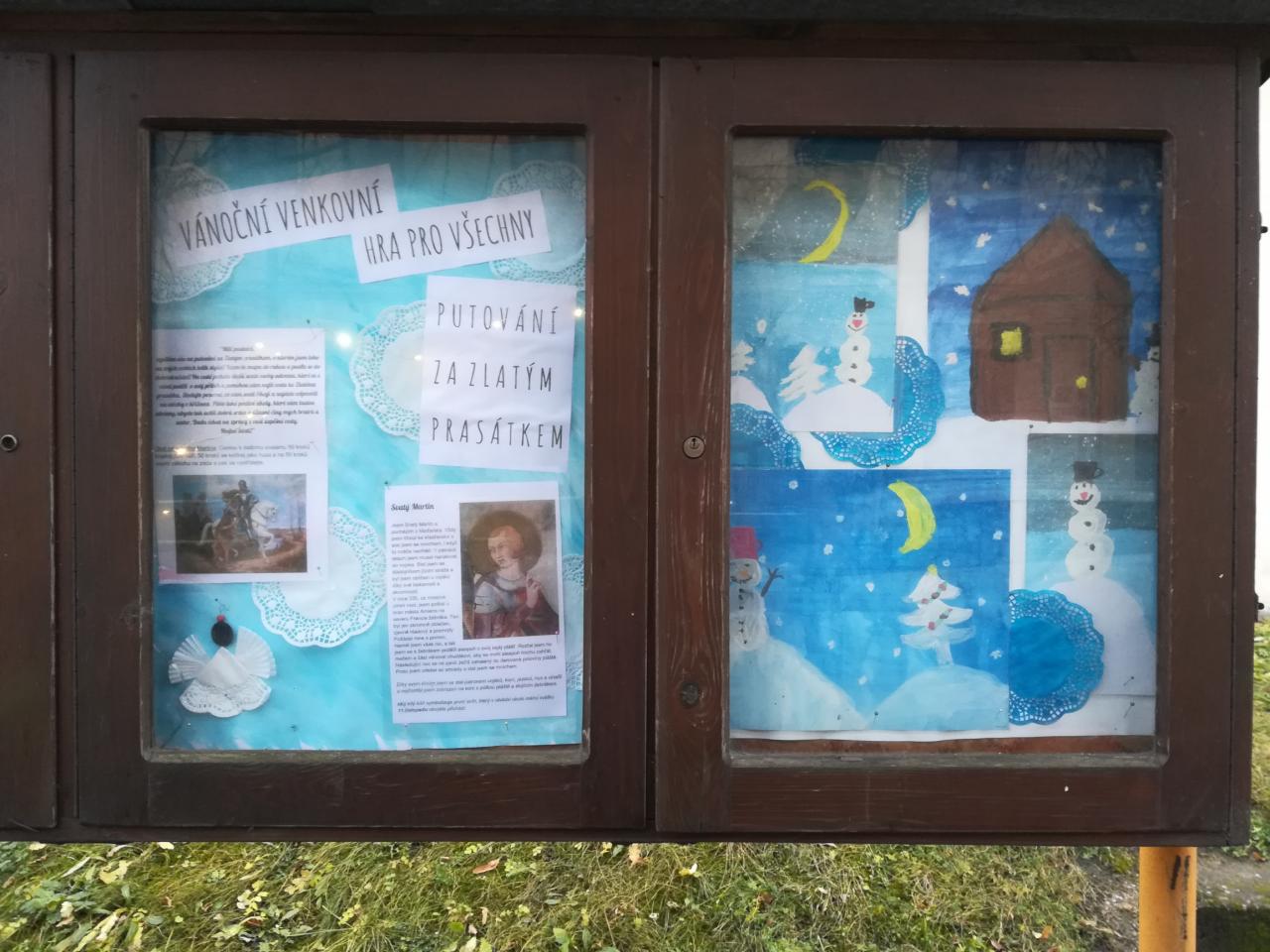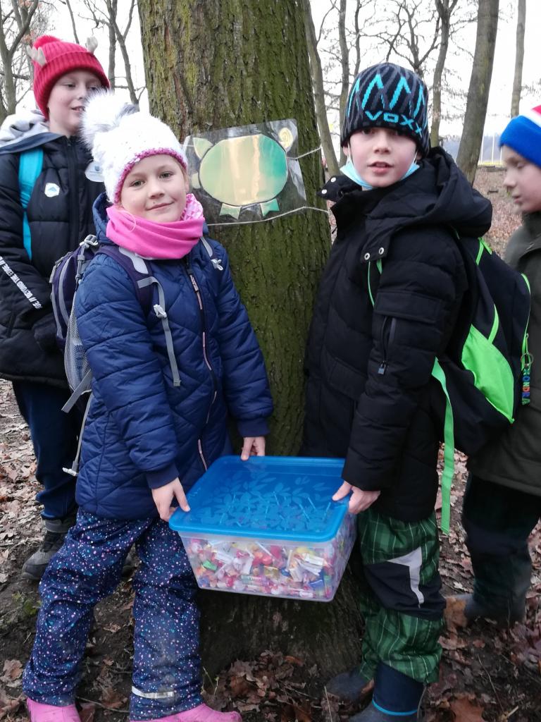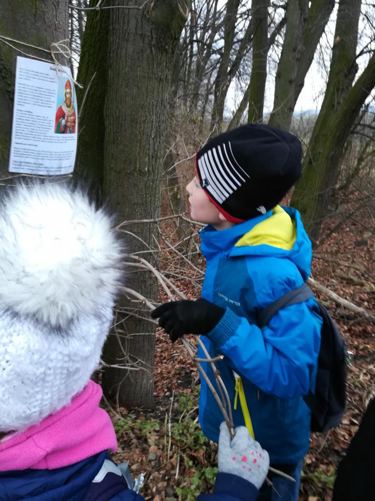 Poslední školní den před vánočními prázdninami jsme se vydali na venkovní hru nazvanou Cesta za zlatým prasátkem. Hned ráno jsme na stromečku ve třídě objevili andělskou poštu, ve které byly pokyny ke hře včetně mapy s popisem stanovišť a s pracovním listem s tajenkou. Na zastávkách na nás čekaly postavy světců , které patří k adventnímu času, s popisem jejich životního příběhu a s úkolem pro žáky, který nám měl pomoci s vyluštěním tajenky. Cesta vedla od školy kolem firmy Montano a podél Kounického potoka směrem ke hřišti, kde na nás čekal cíl se sladkou odměnou. Během cesty jsme se dozvěděli mnoho zajímavých informací a také jsme si užili legraci. Celou cestu nás doprovázela paní učitelka a paní vychovatelka Jitka Jechová ze školní družiny, které nám s některými úkoly maličko pomohly. I tak jsme ale tajenku zdárně vyluštili a zlaté prasátko v LESOPARKU našli. Děkujeme také všem paní učitelkám , které pro nás tuto zábavnou hru připravily.
