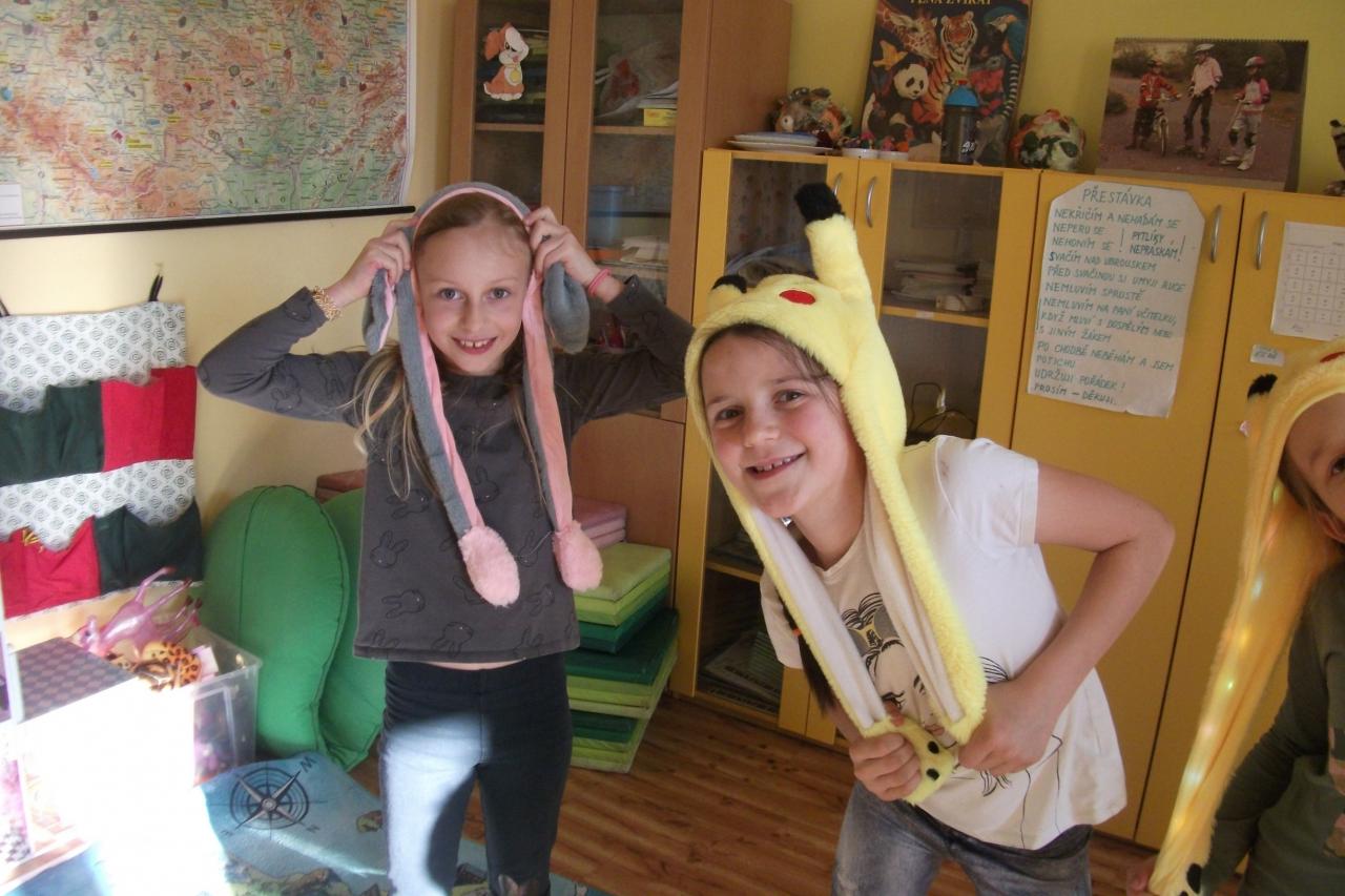 Děti si přinesly klobouky a čepice nevídaných tvarů a barev. Sešlo se několik zvířátek s pohyblivýma ušima, ozdobné klobouky pro dámy a pány i královská koruna. Některé děti si pokrývku hlavy dokonce vyrobily samy. A víte, že v nich šlo pěkně čtení i počítání? A samozřejmě také tancování.