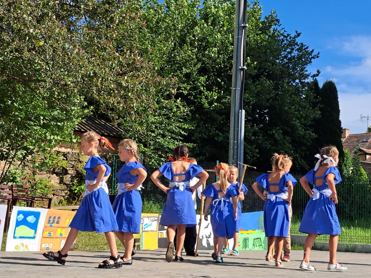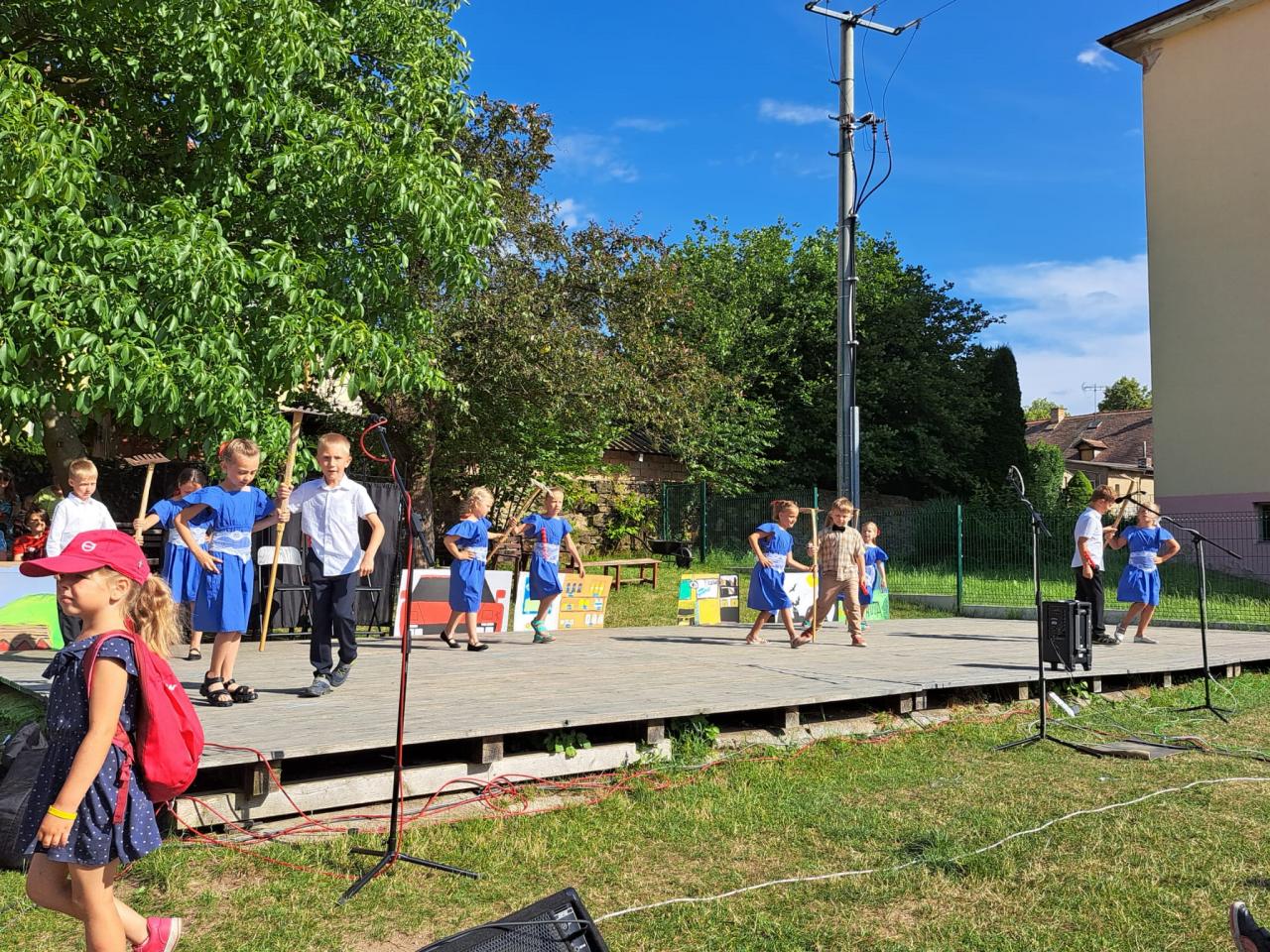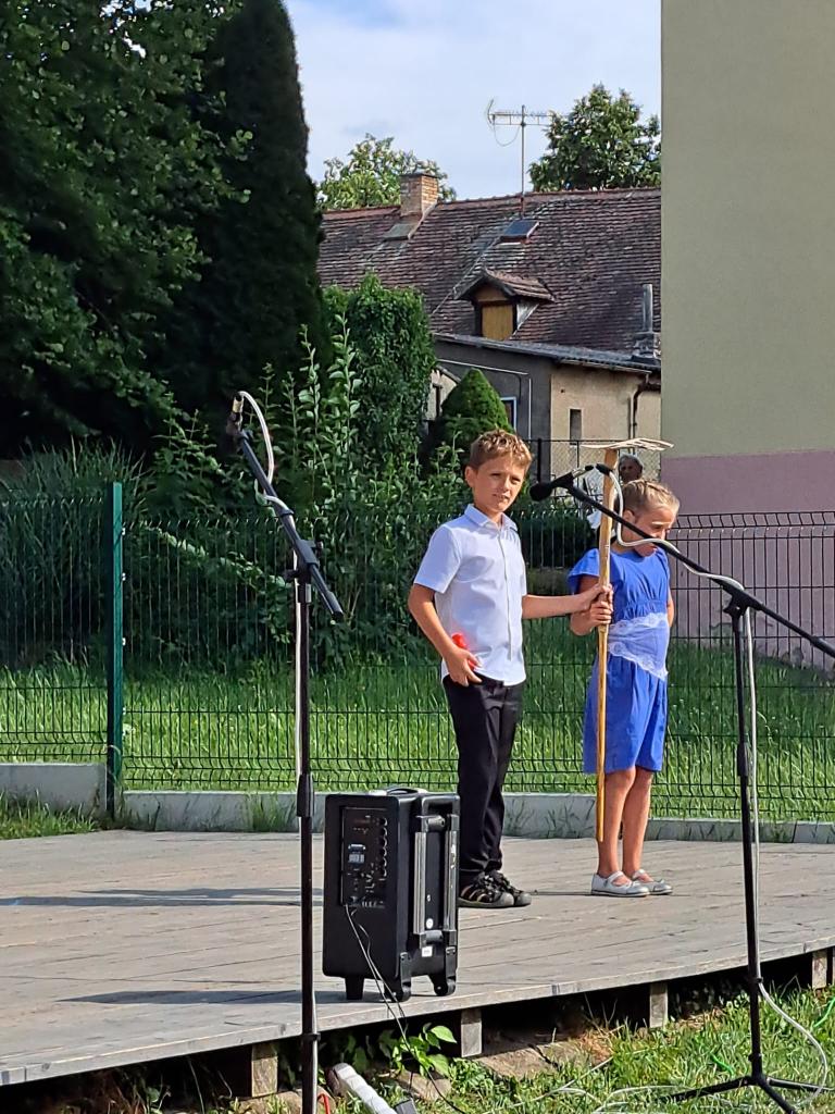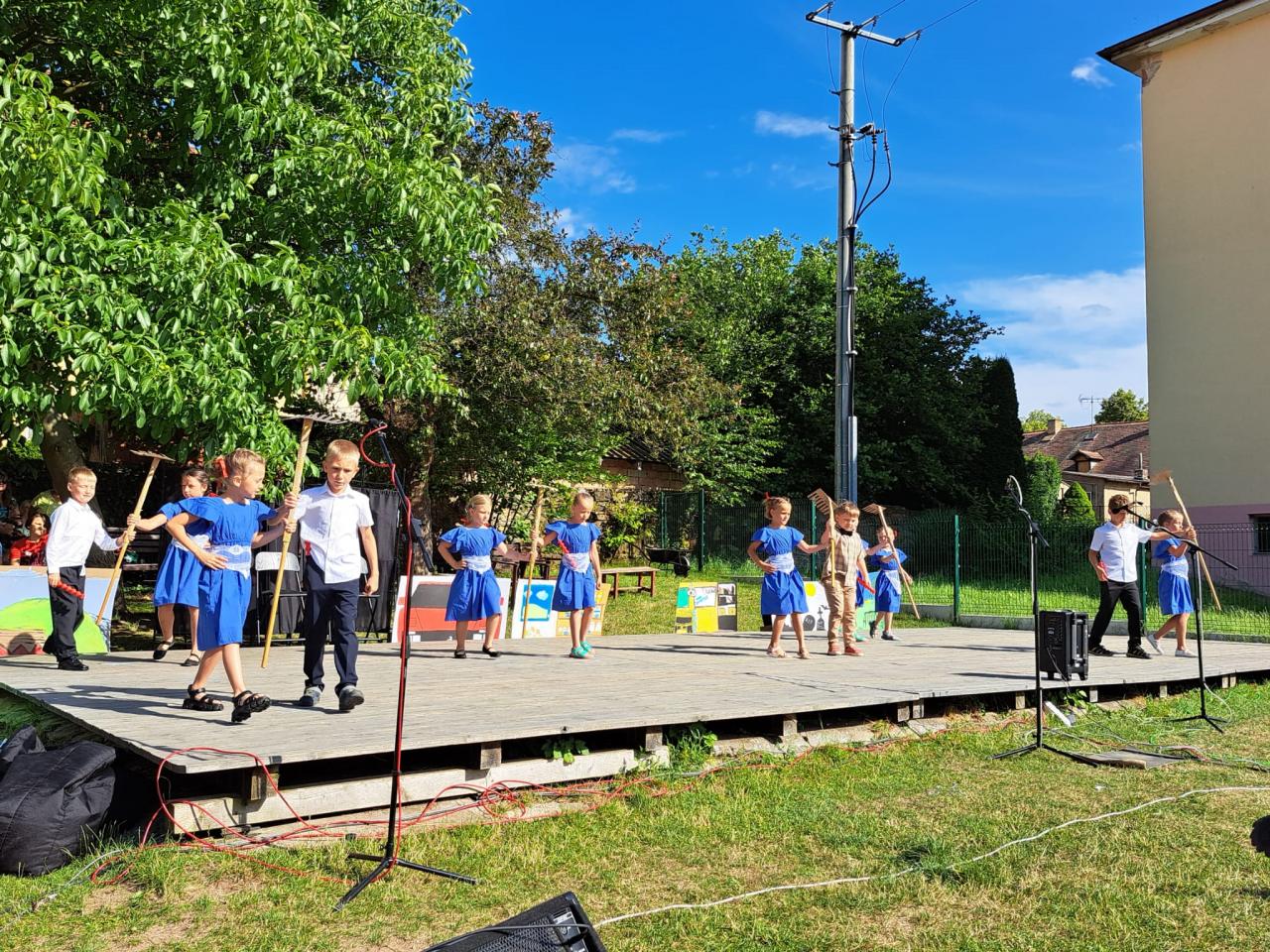 Letošní slavnostní zakončení školního roku proběhlo již tradičně na školní zahradě a bylo spojené i s oslavami obce, která právě v tomto roce slaví 1030 let od svého vzniku. Na své vystoupení se prvňáčci svědomitě připravovali několik týdnů, a to nejen nácvikem tanečního pásma s hudebním doprovodem známých lidových písniček, ale i tvorbou tanečních kostýmů, s jejichž výběrem významně pomohly starostlivé maminky. Vystoupení se dětem vydařilo stejně jako počasí, a tak jsme všichni prožili příjemné odpoledne včetně sledování programu našich starších spolužáků.