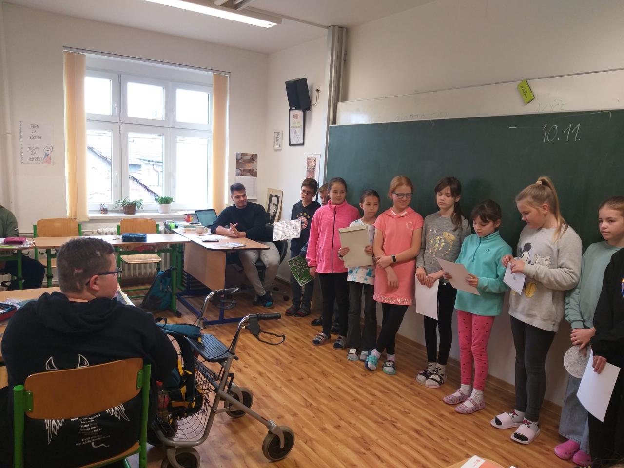 Páťáci mají obrovské srdce. Pro našeho nemocného spolužáka vyrobili tajenky, mandaly a různé další kvízy, které mu zpříjemní odpoledne a volné chvilky doma. Společně jsme je pak Vítkovi donesli do jeho třídy.
