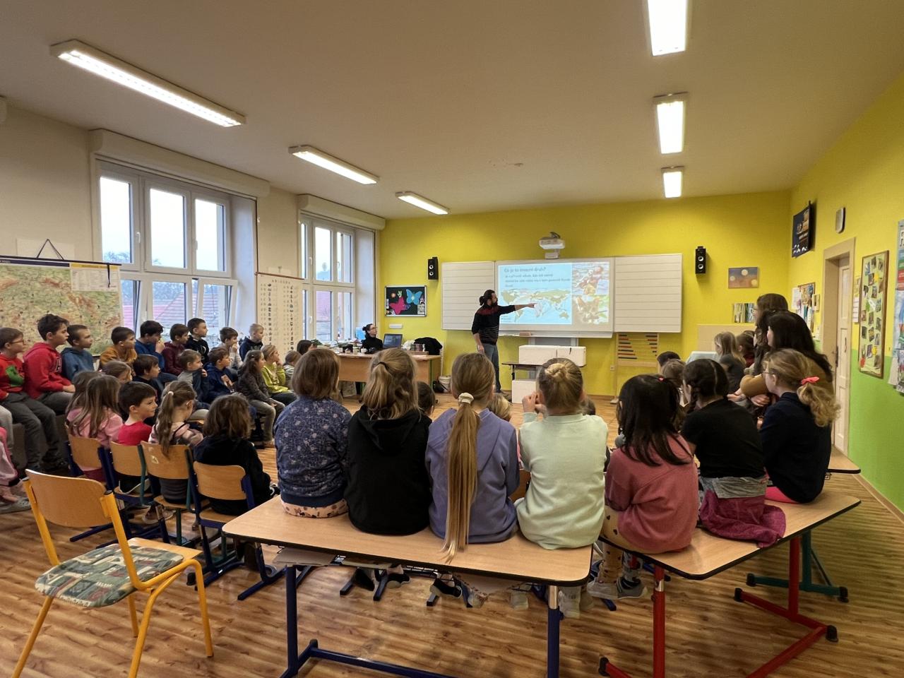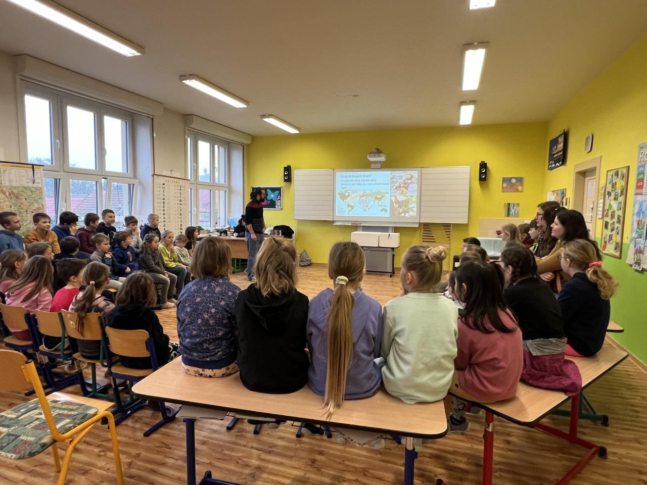 Přednášejícím byl doc. Mgr. Oldřich Kopecký, Ph.D., který vyučuje na Zemědělské univerzitě v Praze a věnuje se v rámci ekologie problematice biologické diverzity. Přednášky se zúčastnili žáci 1. - 9. ročníku, kteří pozorně sledovali výklad o šíření invazních druhů a jeho dopadu na narušení rovnováhy ekosystémů. Téma bylo zajímavé nejen pro žáky, ale i přítomné pedagogy. Přednášející pozitivně zhodnotil příjemné prostředí školy i zájem ze strany žáků.